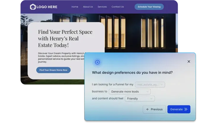 Creating sleek, high-converting pages for your funnels has never been easier. With Funnel AI, all you have to do is answer a few prompts about your business and industry and you’ll get a stunning digital presence ready to attract leads, drive conversions, and grow your business. All you have to do is customize it to match your branding.
