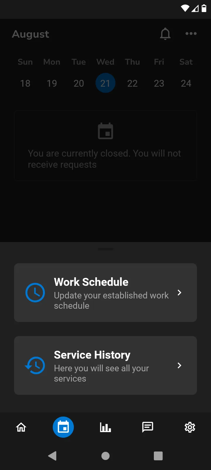 Set your work schedule and availability by tapping the Manage Schedules card in the Home screen.