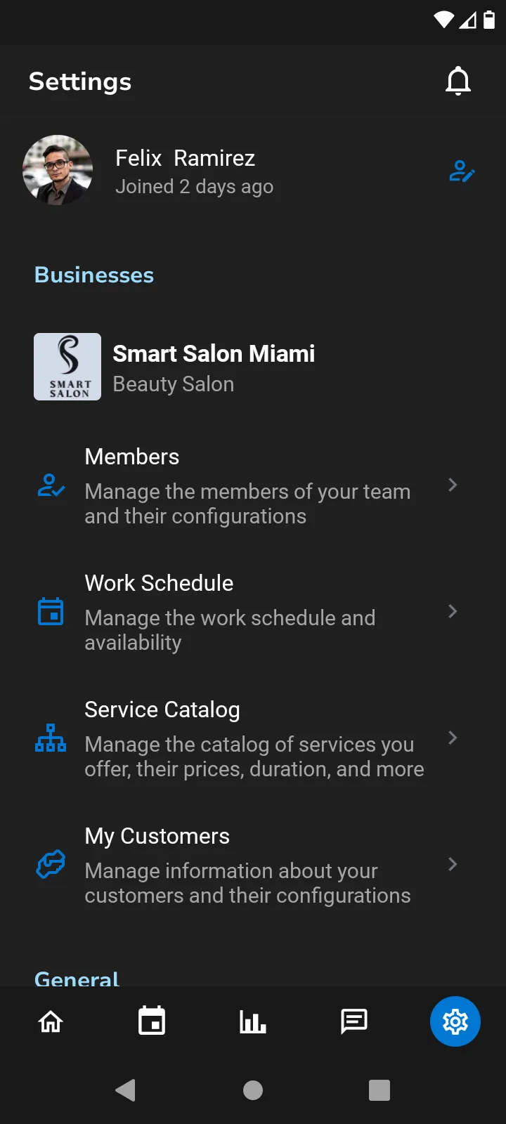 You can also access the Service Catalog from the Settings screen by tapping the settings icon in the bottom menu and then select Service Catalog.