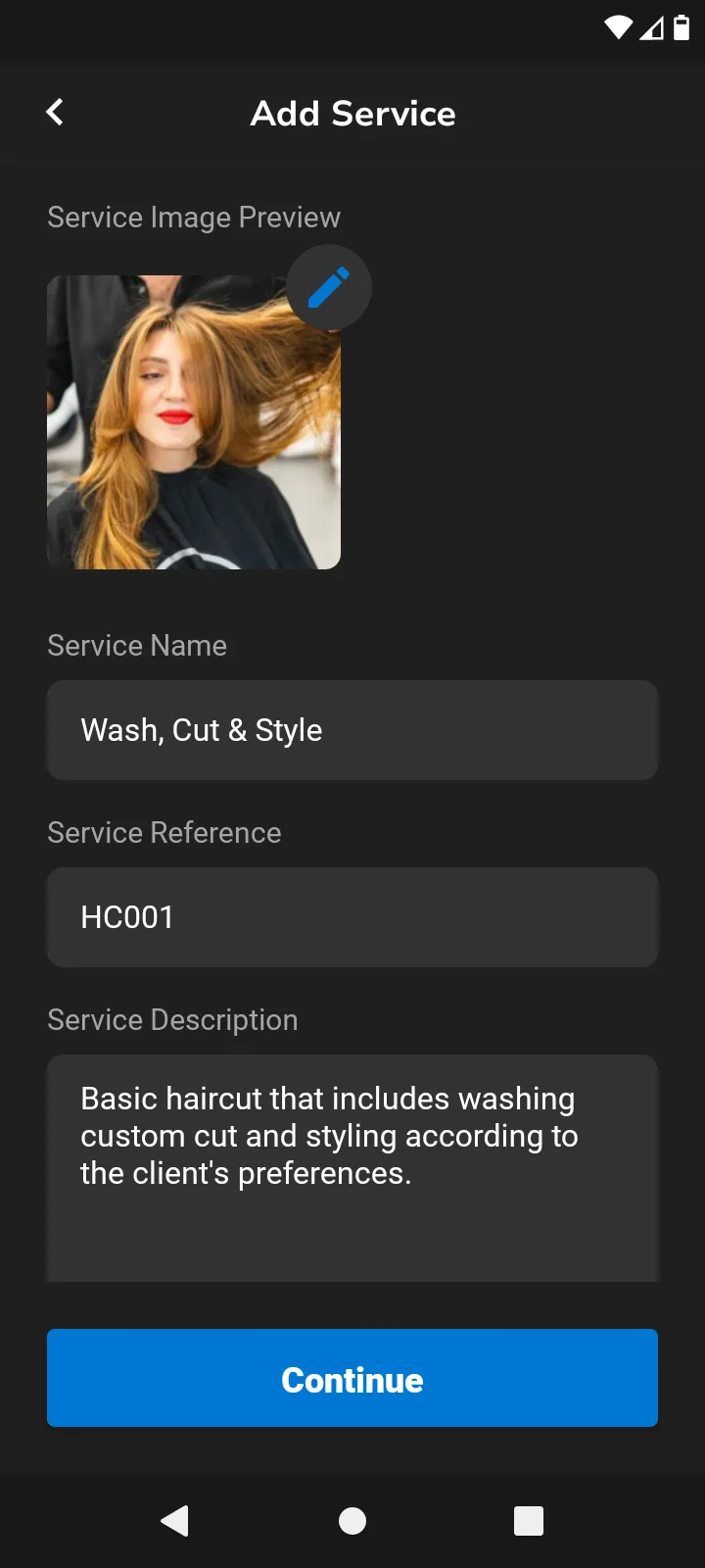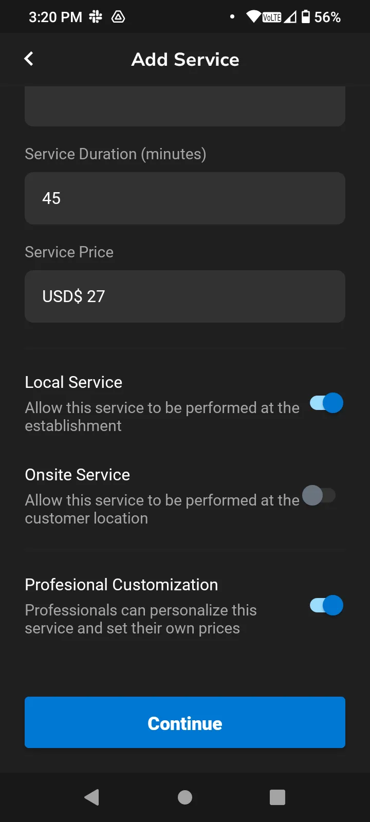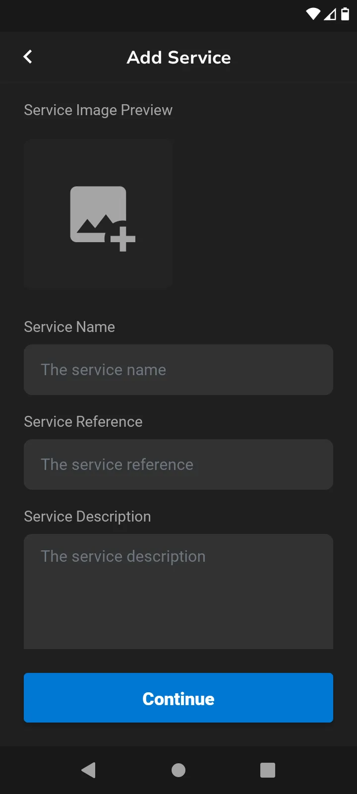If the Category has no services you will see the option to Add Service. Tap the button to continue.
