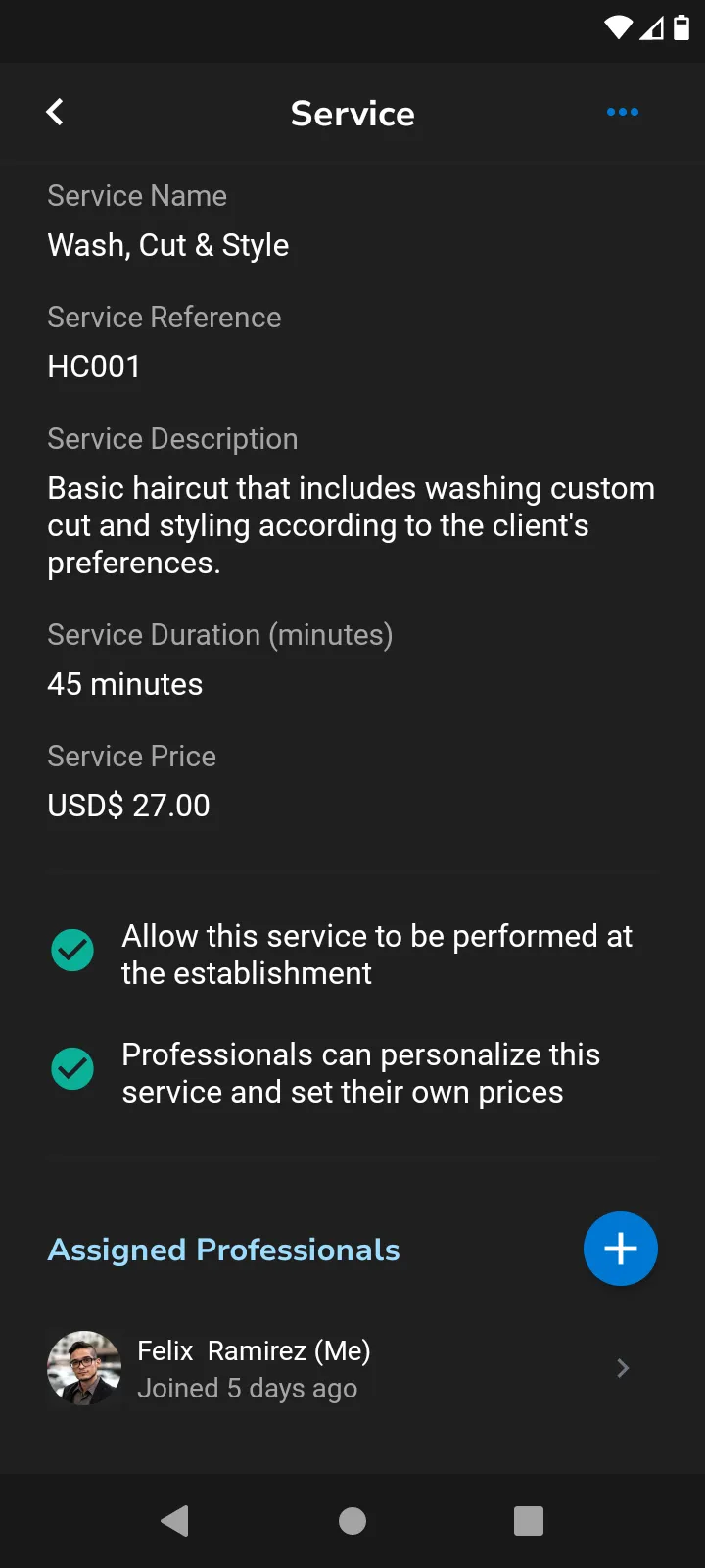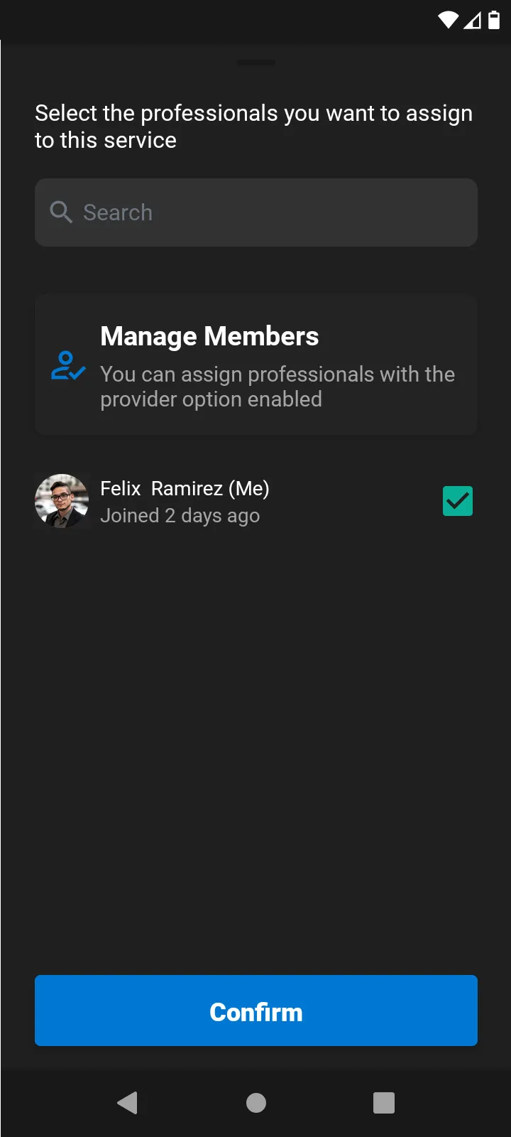In the Manage Members section you can assign the professionals that are able to offer the services to customers.